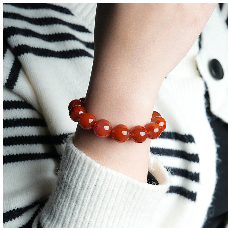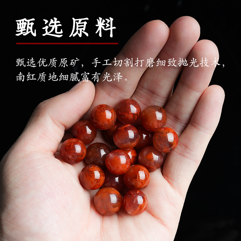 原矿南红玛瑙火焰纹圆珠单颗散珠隔珠星月菩提佛珠文玩手串配饰品
