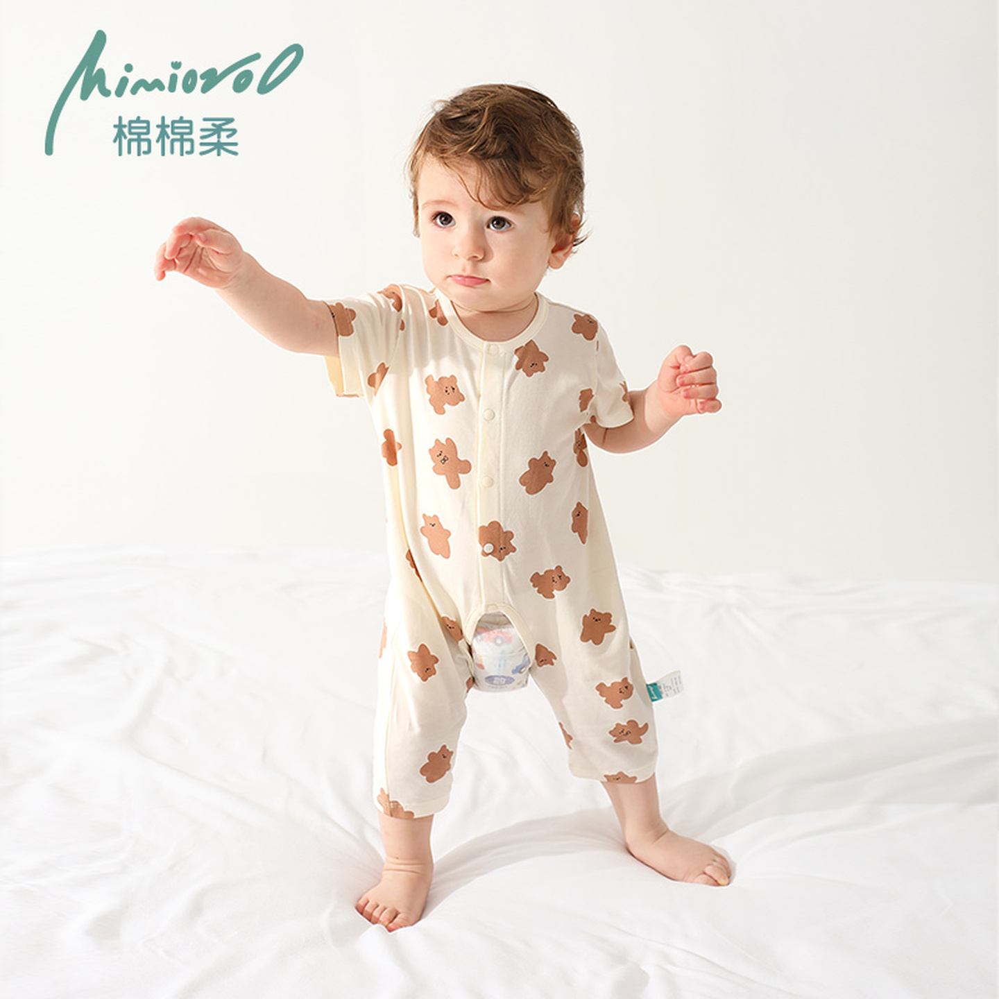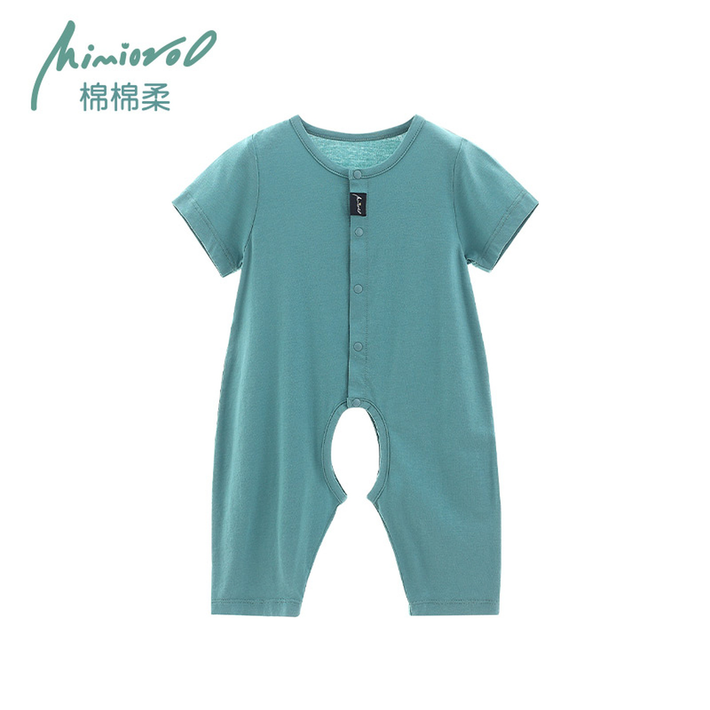 宝宝开裆连体衣夏季薄款婴儿睡衣短袖莫代尔冰丝男女婴幼儿空调服