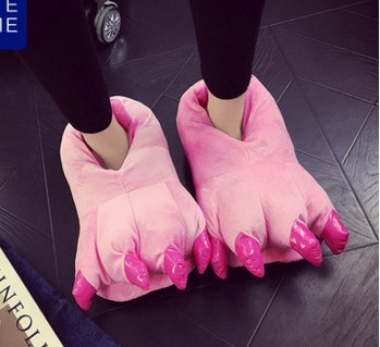 冬季恐龙爪子虎爪子棉拖鞋卡通情侣包跟保暖鞋男女家居儿童怪兽鞋