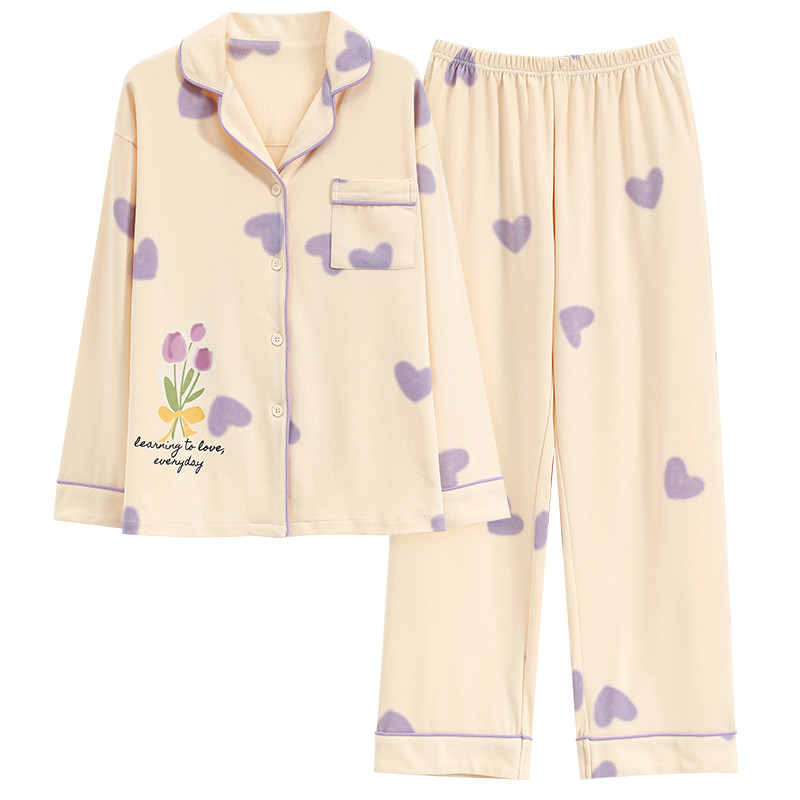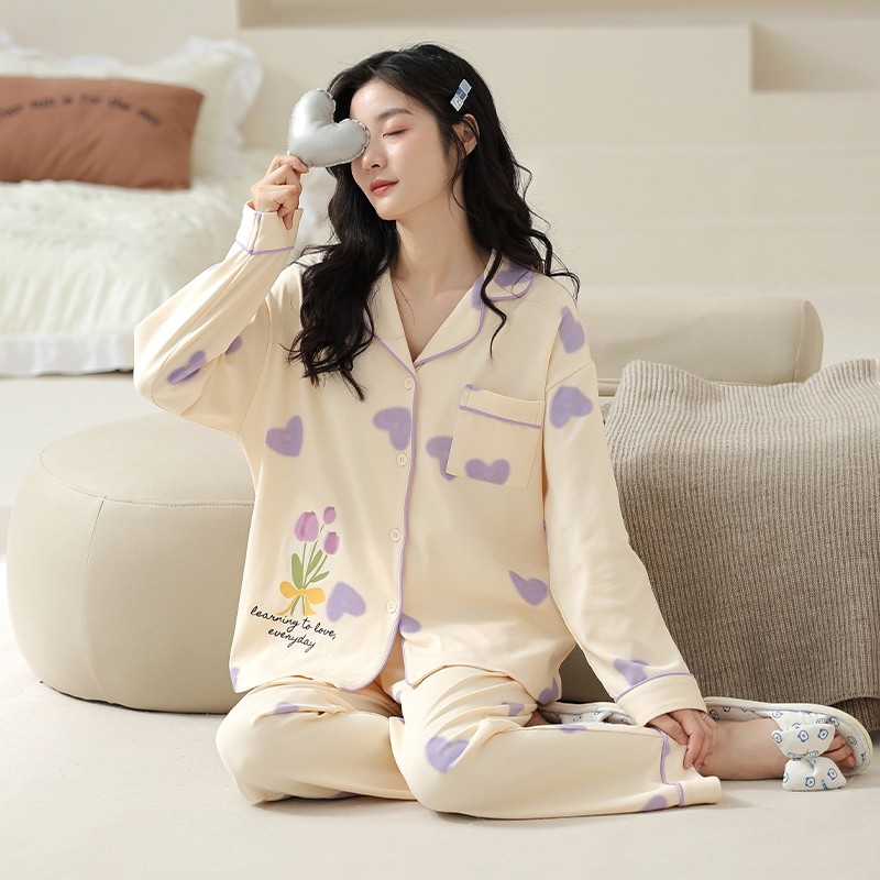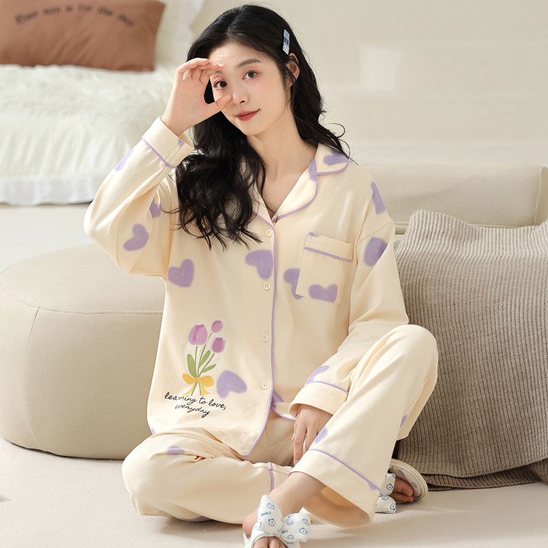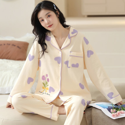 春秋季睡衣女款薄款可爱韩版长袖套装可外穿大码开衫冬夏天家居服