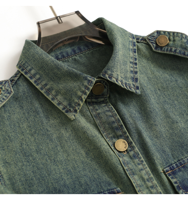 渐变色复古口袋翻领单排扣开衫春季新款24长袖百搭女牛仔衬衫M025