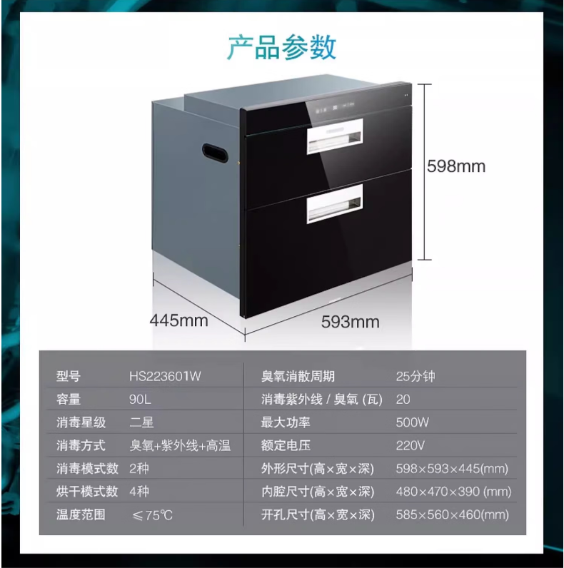 西门子嵌入式消毒柜二星级双门家用餐具烘干厨房碗柜 HS223601W