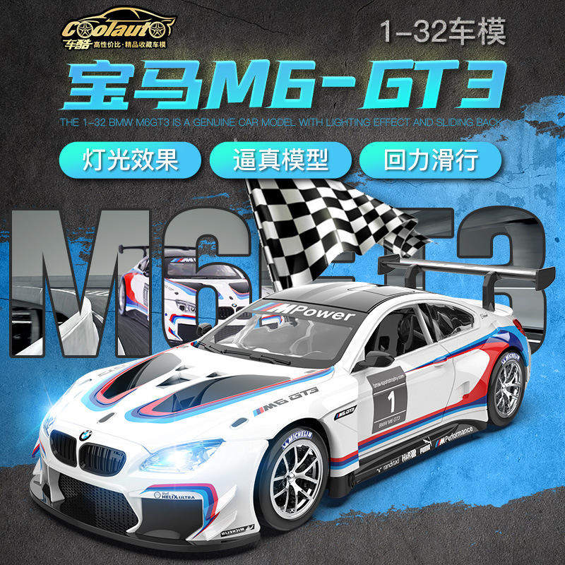 新款1:32宝玛M6 GT3合金车模四轮避震前轮转向声光仿真汽车玩具车