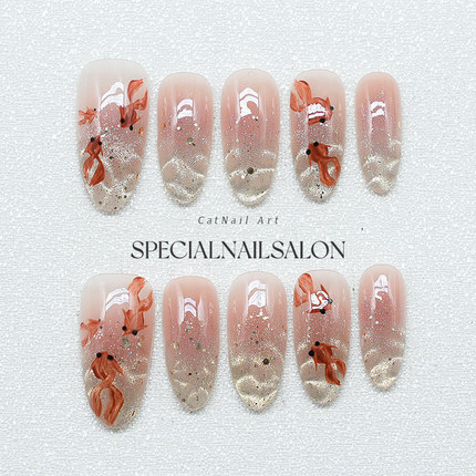 【年年有鱼】纯手工穿戴甲新年款国风锦鲤水波纹温柔显白美甲贴片