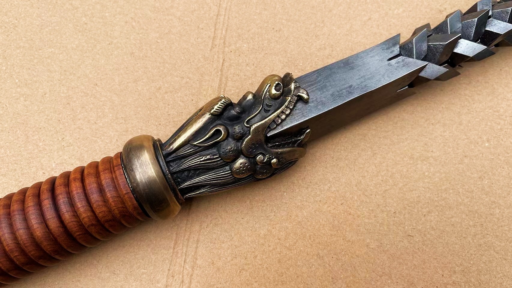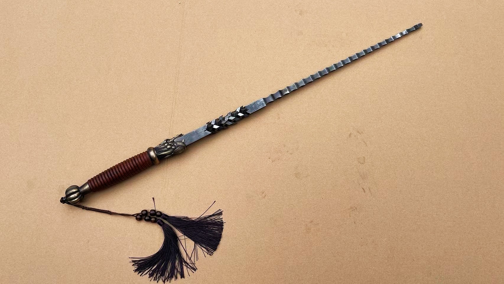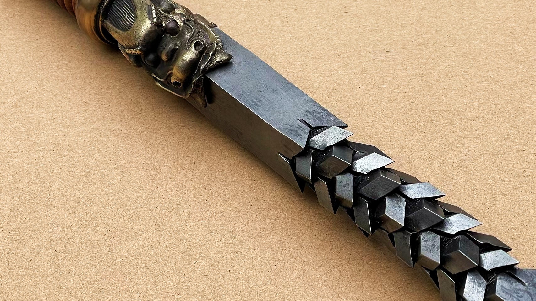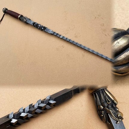 龙鳞锏棍花纹钢一体锻造马鞭长鞭子户外防护冷兵器影视道具未开刃