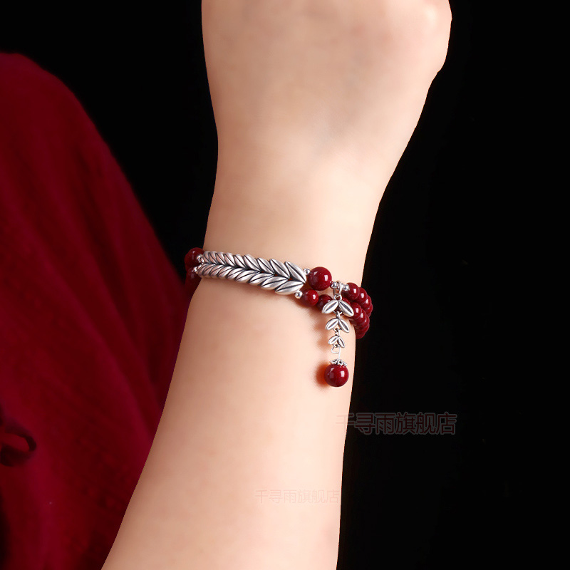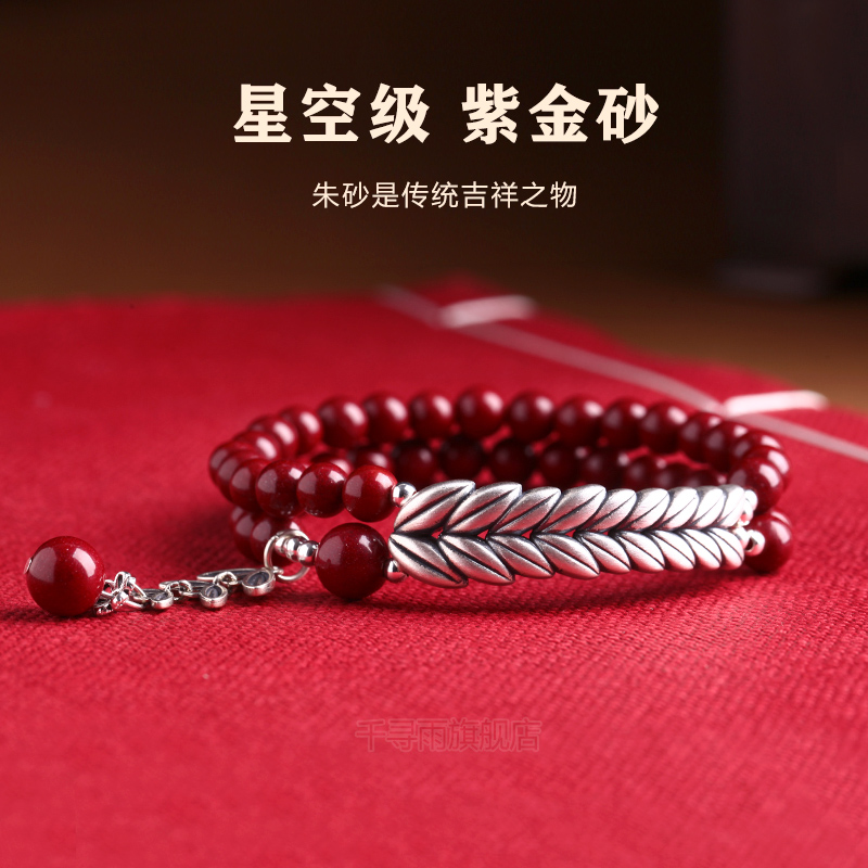 正品天然原矿石朱砂手串女款足银平安本命年属马转运手链饰品礼物