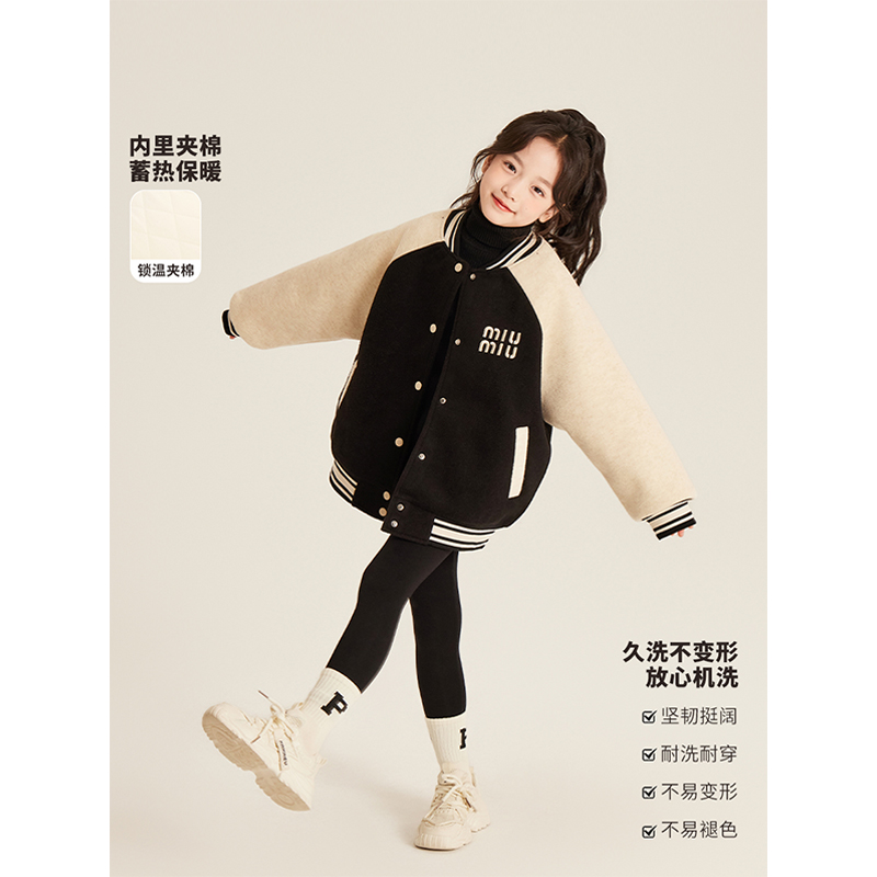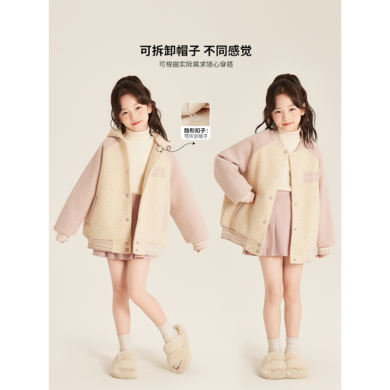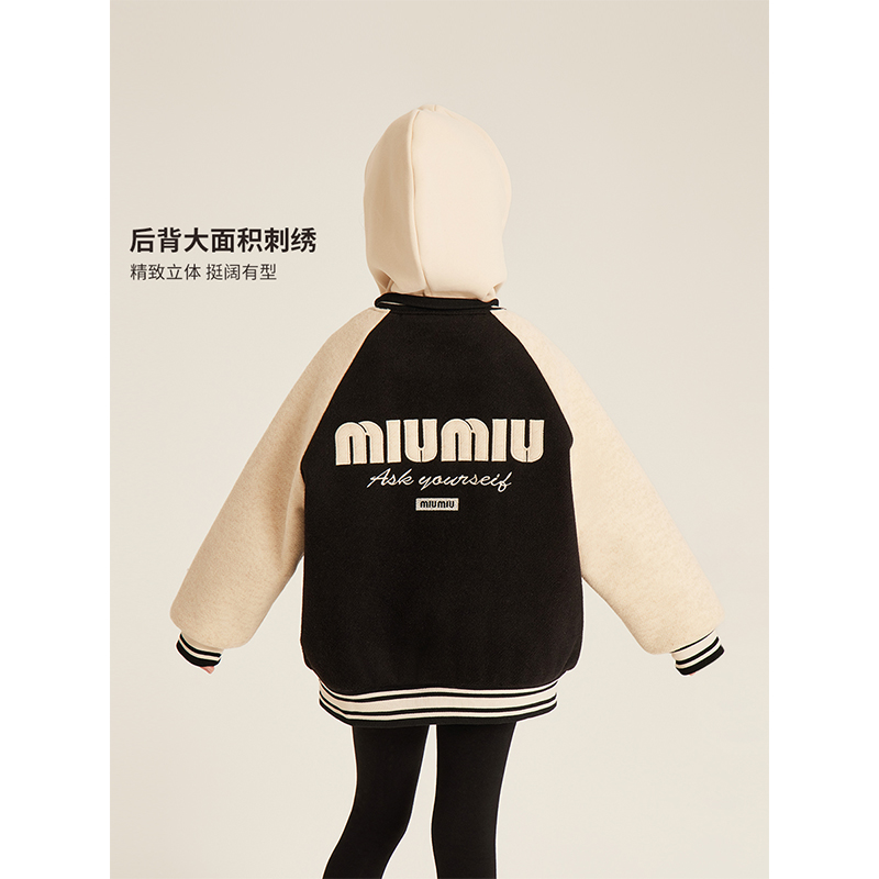 Amybaby女童上衣冬季2025新款miu系拼色连帽休闲棒球服外套