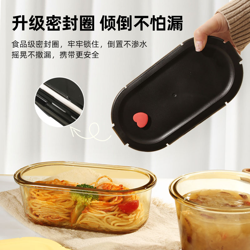 饭盒上班族微波炉加热专用的带饭餐盒玻璃保鲜盒分隔型水果便当盒