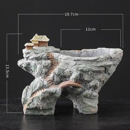树脂山水多肉花盆微景观新中式复古客厅米竹文竹花器家居装饰摆件