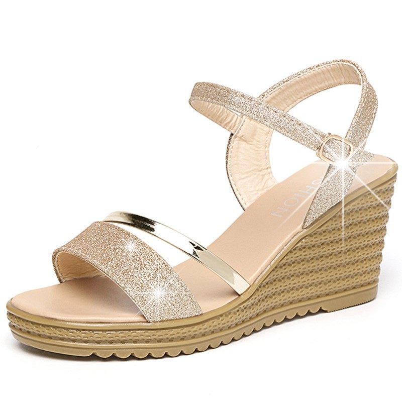 夏季新品百搭厚底中学生高跟鞋凉鞋女坡跟松糕一字带孕妇新款平底