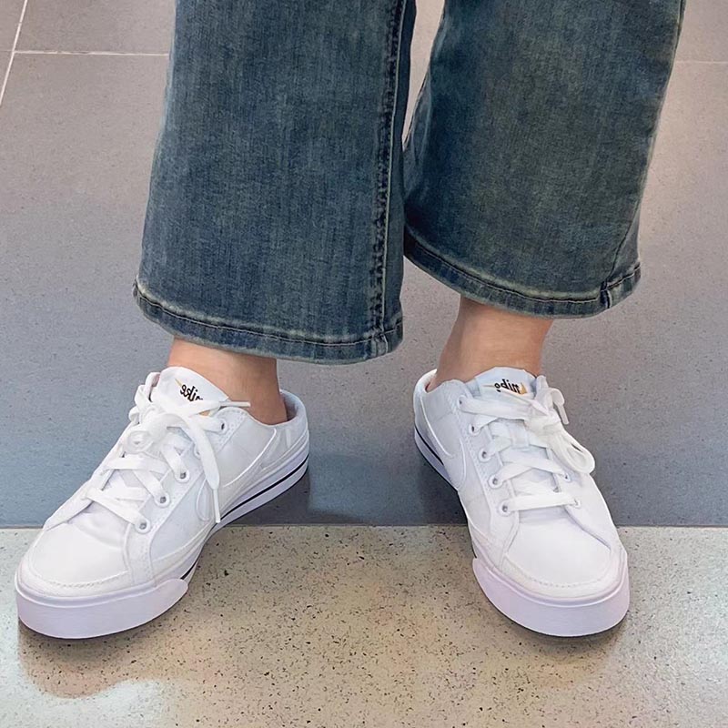 Nike/耐克正品Court Legacy女子一脚蹬懒人半拖帆布鞋DB3970-100
