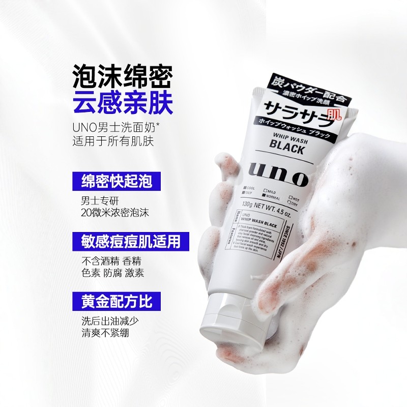 资生堂uno洗面奶男士专用祛痘温和补水氨基酸洁面乳吾诺官方正品