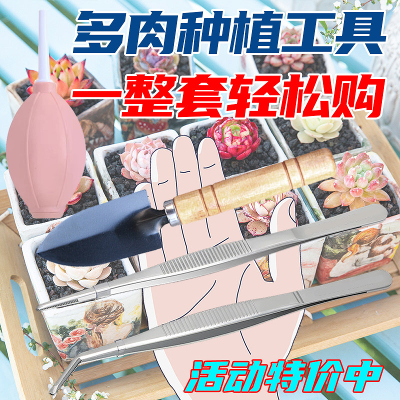 多肉铲子工具套装不锈钢镊子园艺小铲子铲土三件套养花夹种植水壶