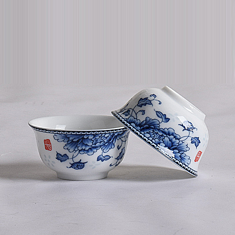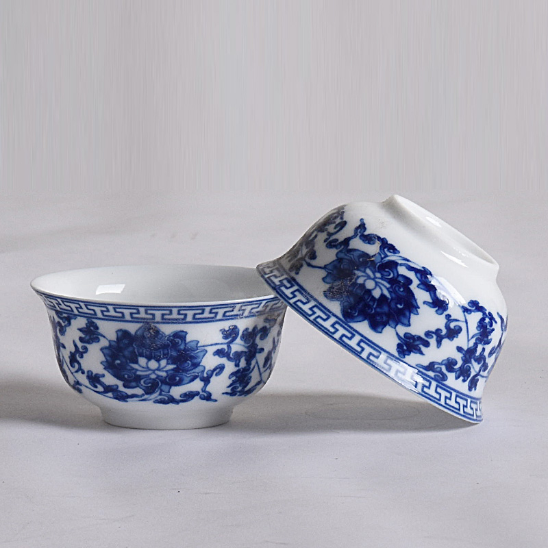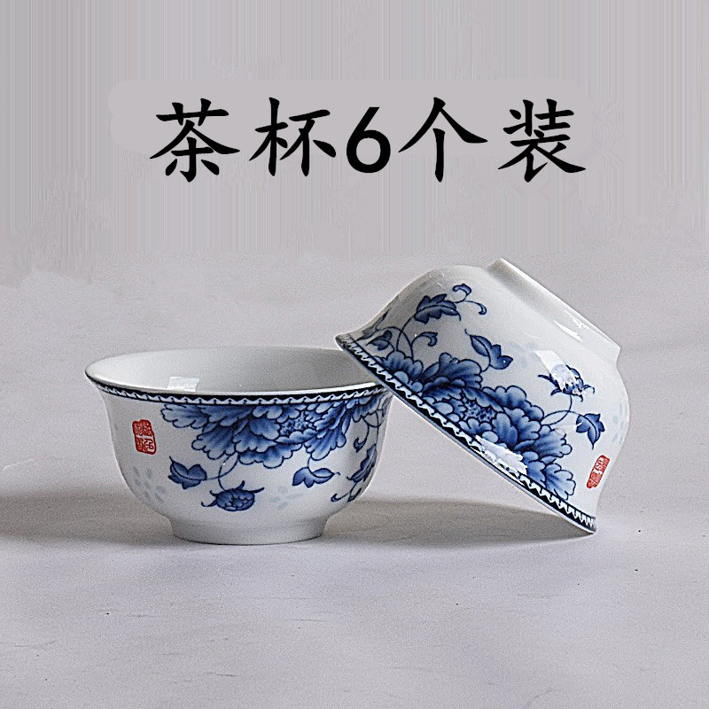 青花瓷陶瓷品茗杯套装主人杯个功夫茶杯茶具单杯小号6只装家用
