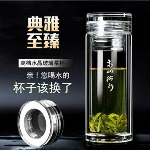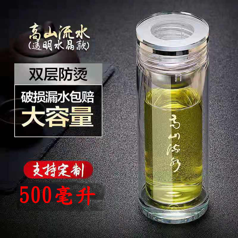 高档双层玻璃杯男女士茶杯带盖过滤网耐高温家用车载办公杯大容量
