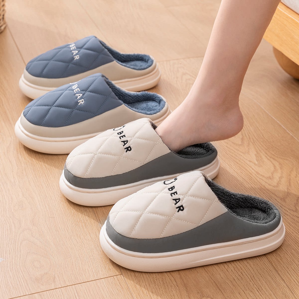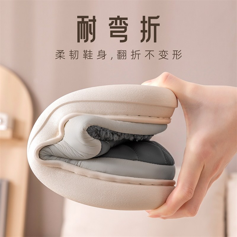 利达妮防水保暖厚底羽绒布棉拖鞋