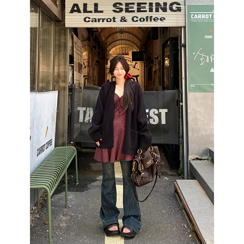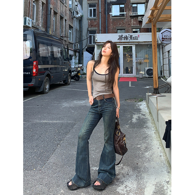 Adan 复古牛仔喇叭裤秋季韩系高腰显瘦百搭通勤弹力做旧休闲裤女
