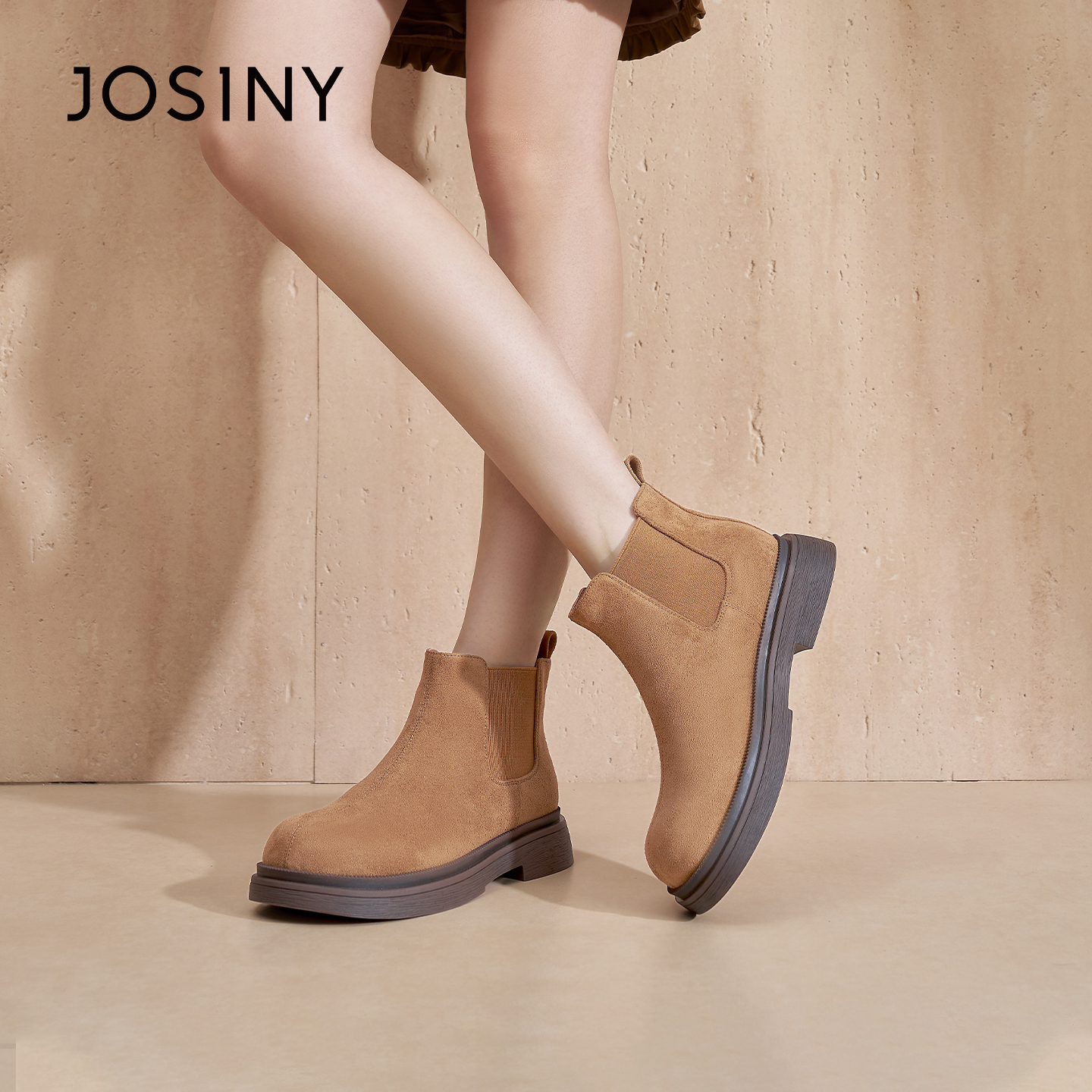 卓诗尼英伦风舒适粗跟简约百搭切尔西靴女靴短筒靴2025年冬季新款