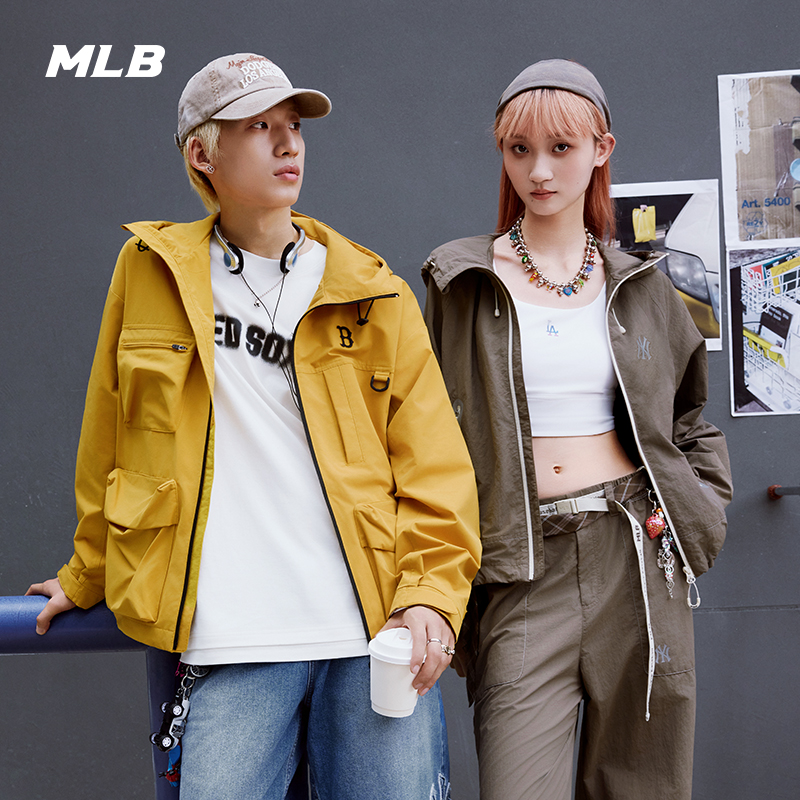 MLB官方 男女情侣防风时尚潮流明线户外连帽外套25秋季新款WJB04