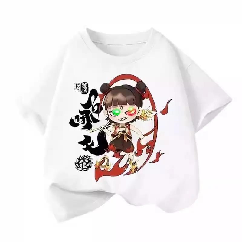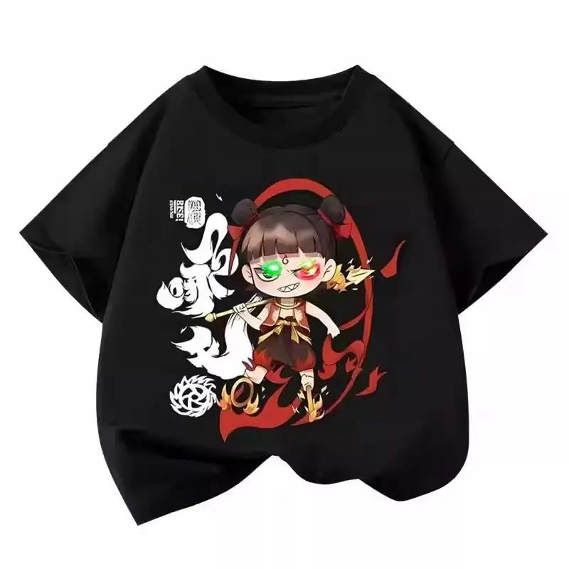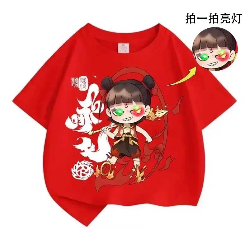 亮灯哪吒男童卡通儿童短袖T恤上衣2025夏季新款宽松纯棉体恤打底