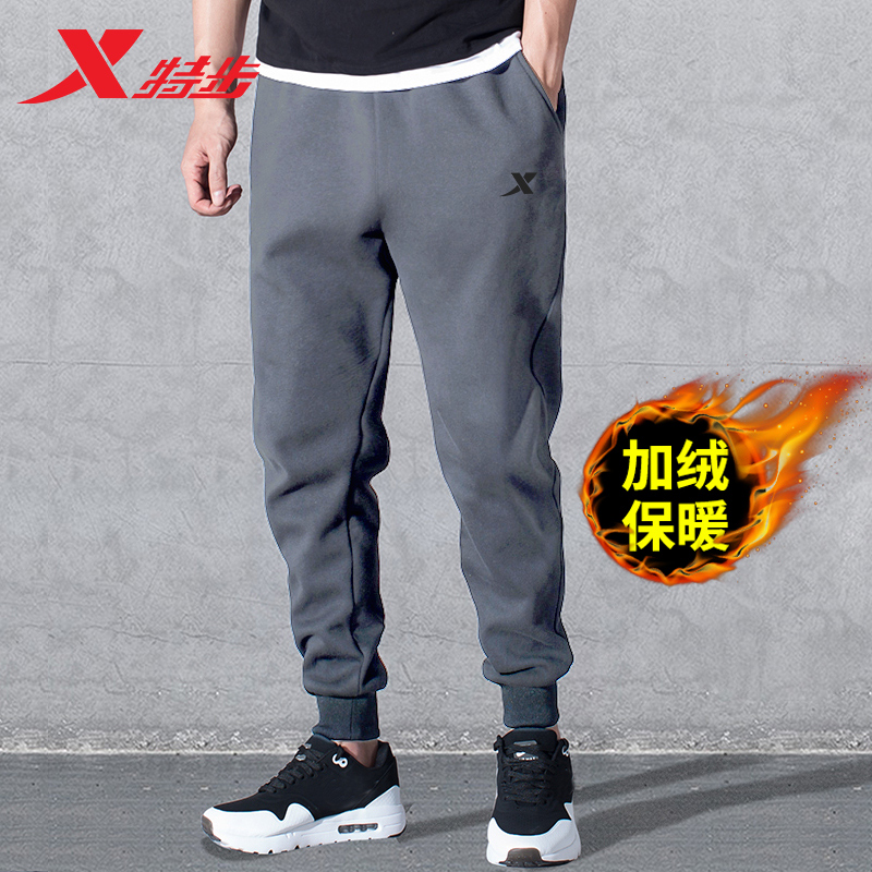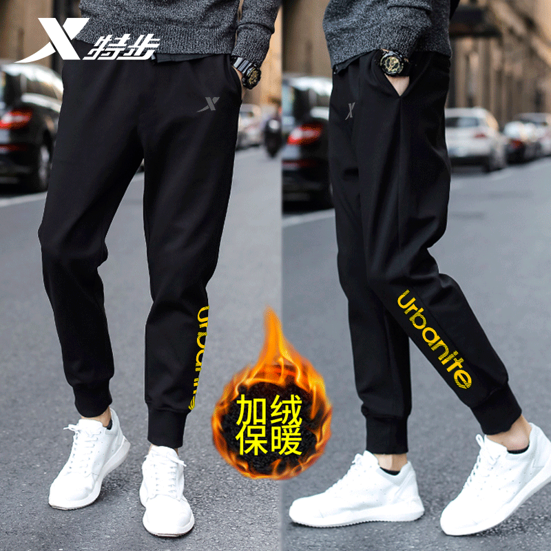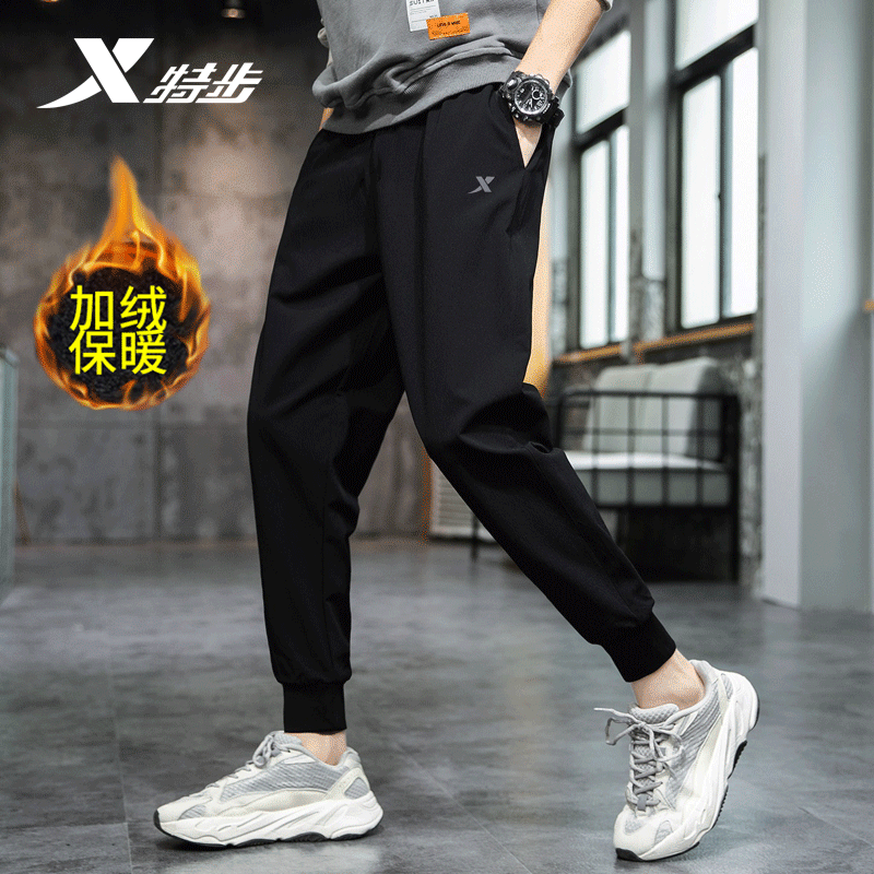 特步冬季加绒卫裤男束脚防风保暖男士运动裤2025秋冬加厚小脚长裤
