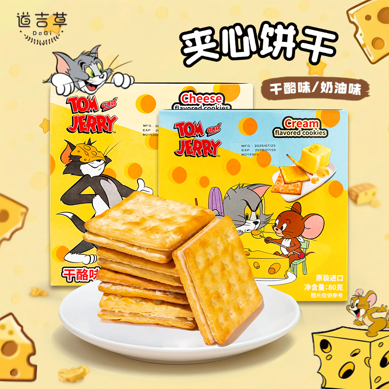 猫和老鼠联名款道吉草奶油干酪味饼干学生儿童零食点心下午茶80g