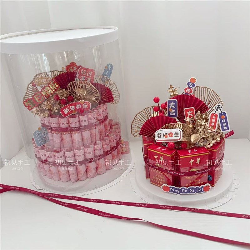 新年创意diy有钱花拜年红包新中式蛋糕礼盒生日礼送长辈父母朋友