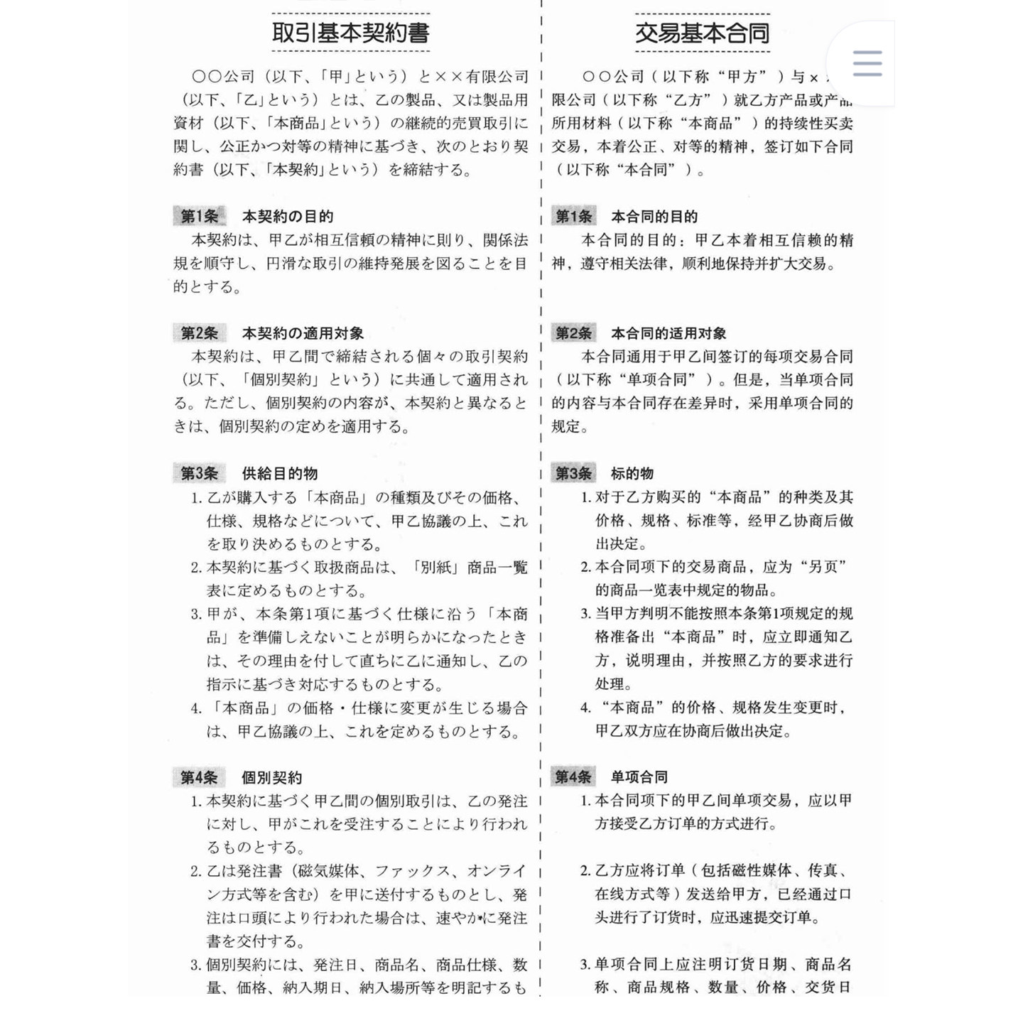 日汉对照企业常用合同协议翻译实例大全PDF商务日语电子资料