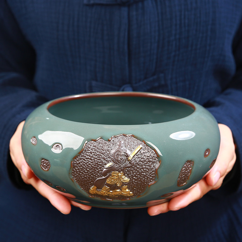 日式茶洗大号特大笔洗水盂水洗缸陶瓷功夫茶具配件茶道零配件家用