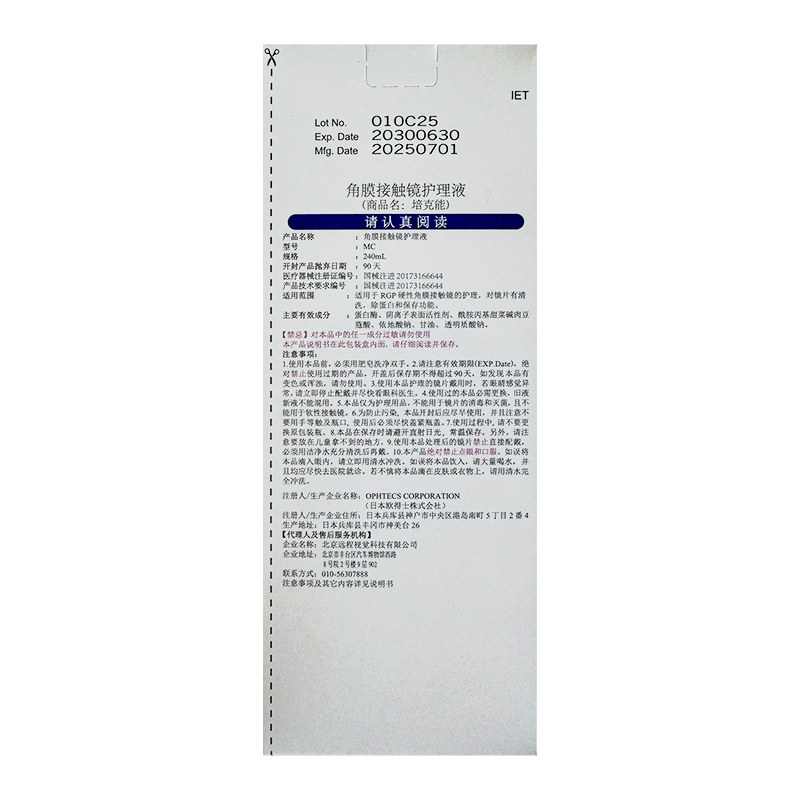 培克能硬性角膜塑形隐形眼镜护理液瓶RPG除蛋白ok镜进口