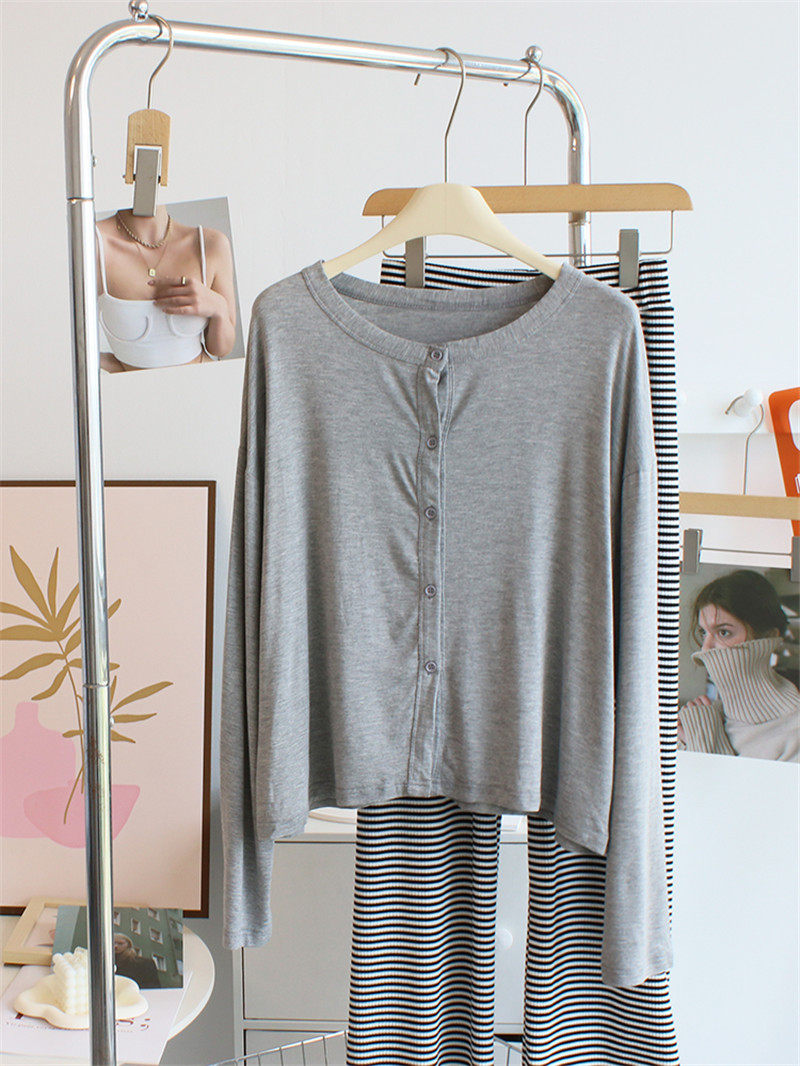 温柔风~柔软莫代尔开衫外套女装夏秋宽松短款长袖防晒衣百搭上衣