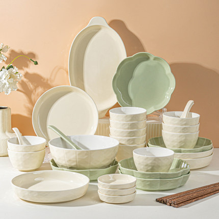 奶油风简约小碗家用2025新款陶瓷饭盘釉下彩餐具创意碗碟套装家用