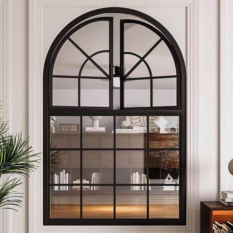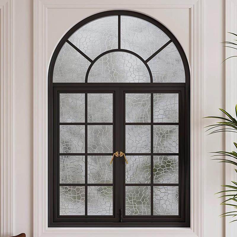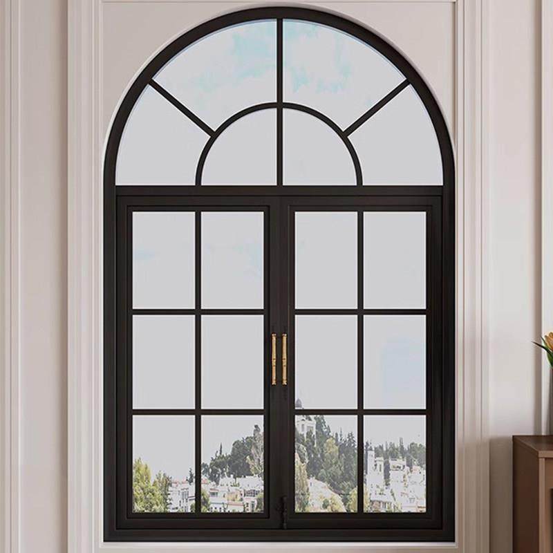 法式覆古断桥铝合金格子门窗拱形老钢窗别墅洋房落地隔音平开门窗