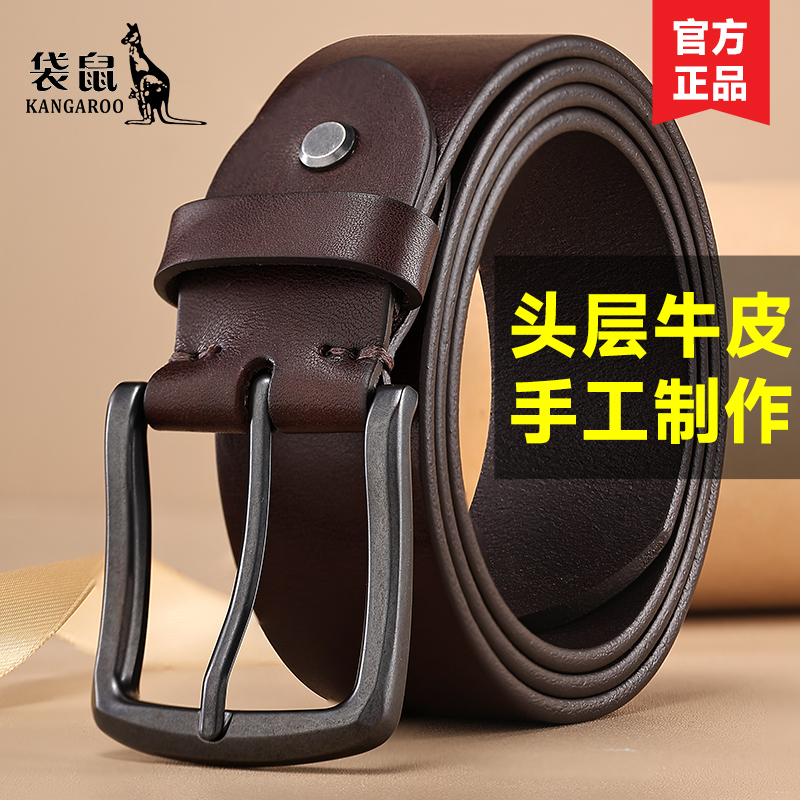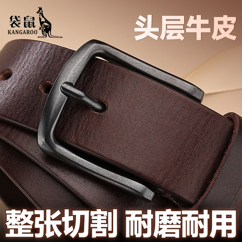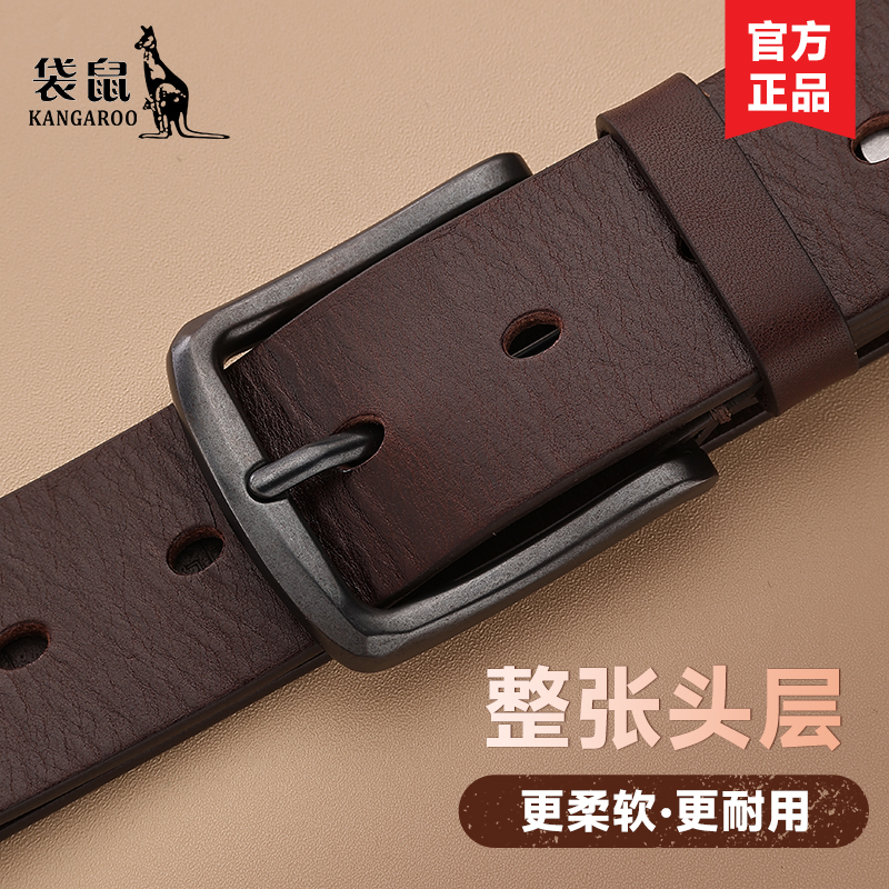 袋鼠男士优质头层牛皮针扣皮带