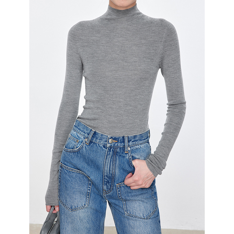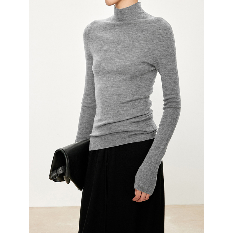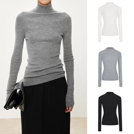 MosesQueen魔西女王高级感气质半高领针织衫女秋修身内搭打底毛衣