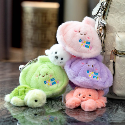 可爱藏在贝壳里的螃蟹钥匙扣挂件海龟公仔小丑鱼玩偶书包背包挂饰