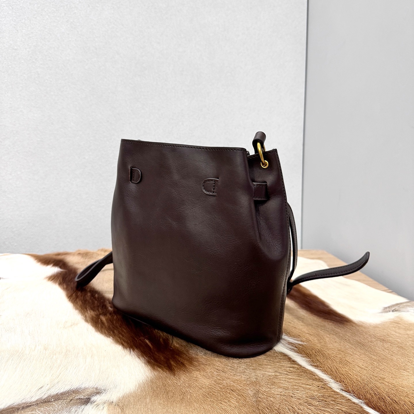 轻便款~新款真皮女包百搭水桶包复古植鞣头层牛皮斜挎单肩包女