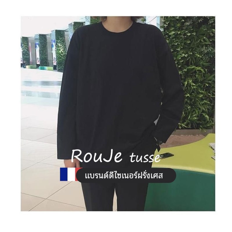Rouje tusse打底衫百搭秋季宽松大码T恤女长袖内搭中长款上衣