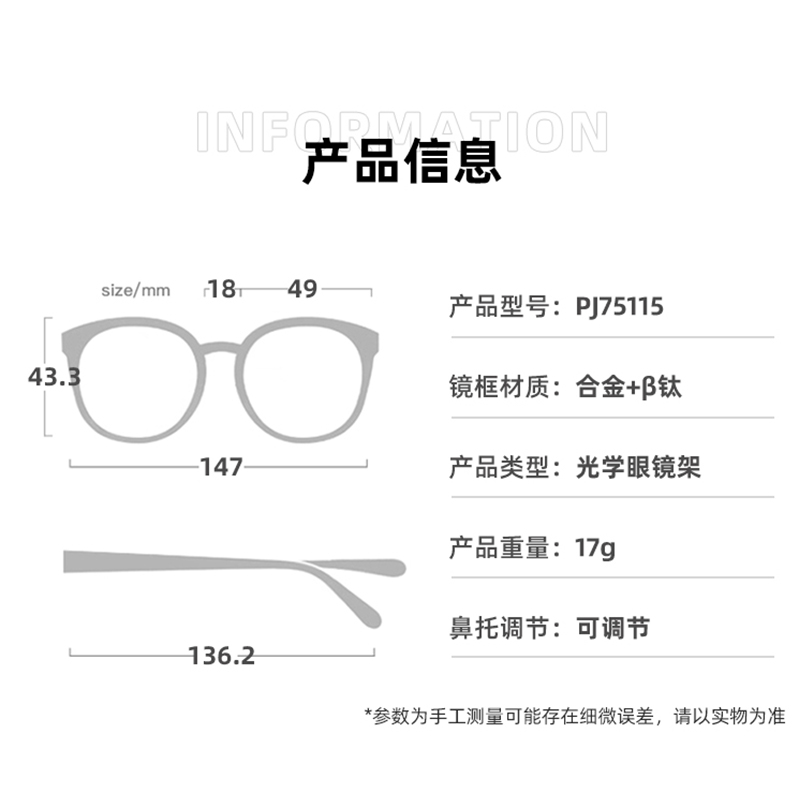 帕莎2024杨超越金丝小框眼镜框超轻钛金属方圆脸男女显脸小75115