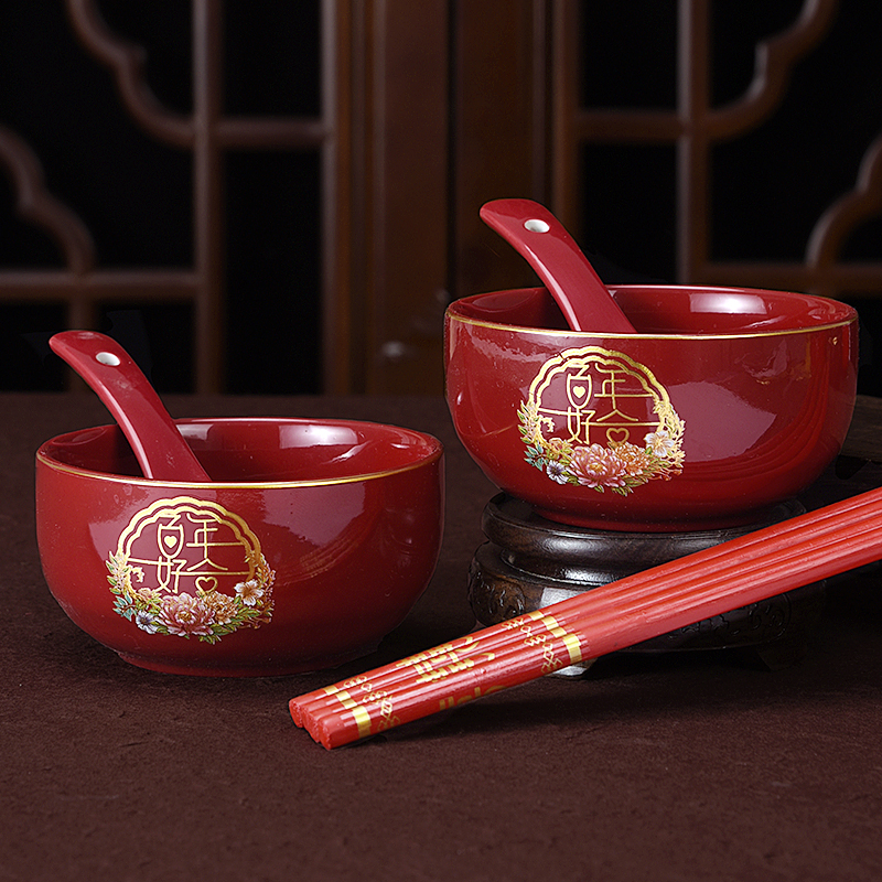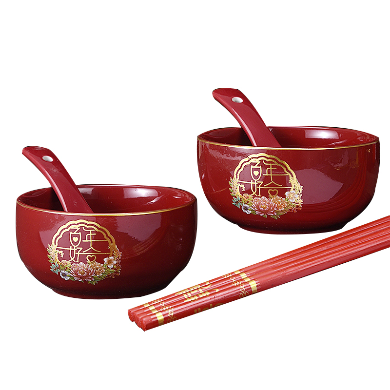 结婚碗筷套装陪嫁喜碗红碗对碗