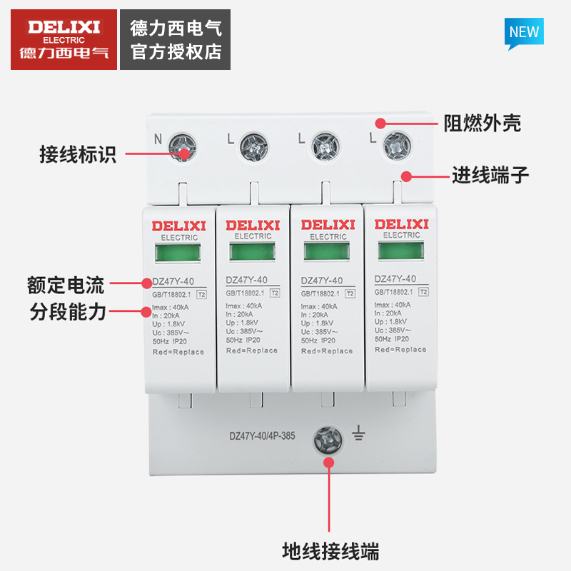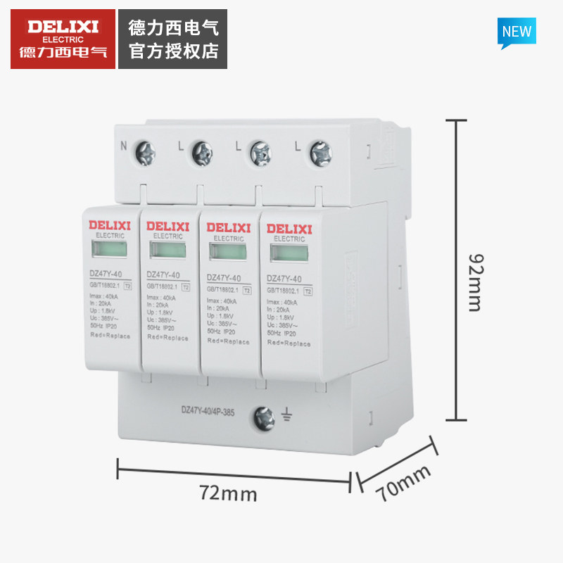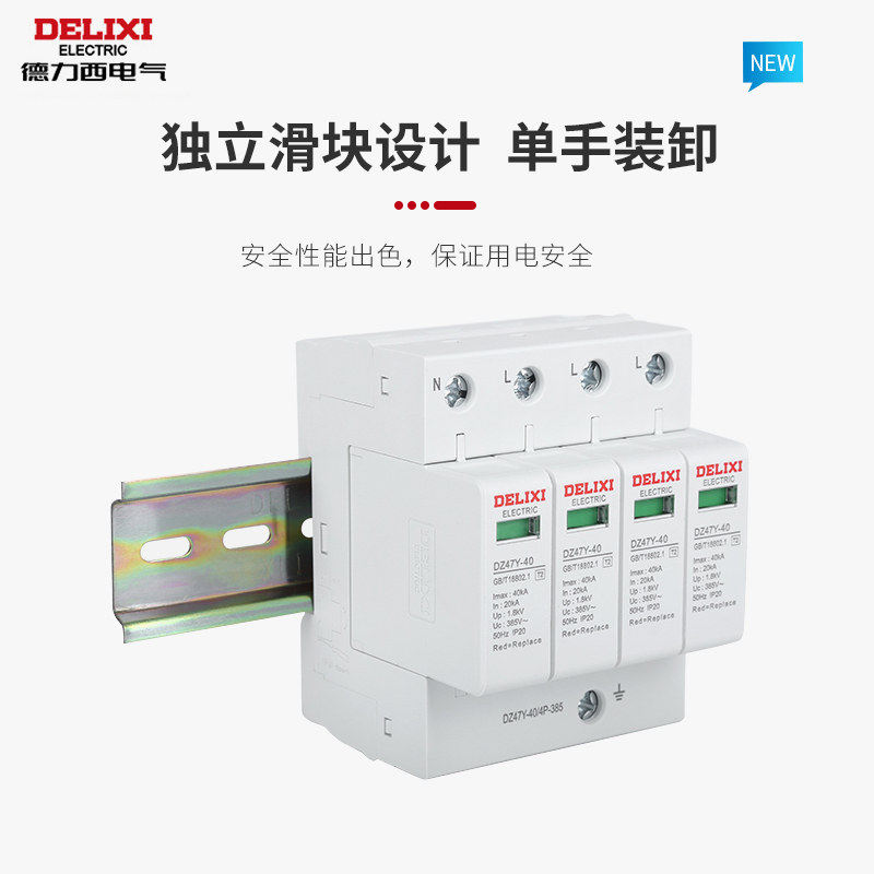 德力西浪涌保护器避雷器防雷击4P 二级电涌开关380V DZ47Y 40KA