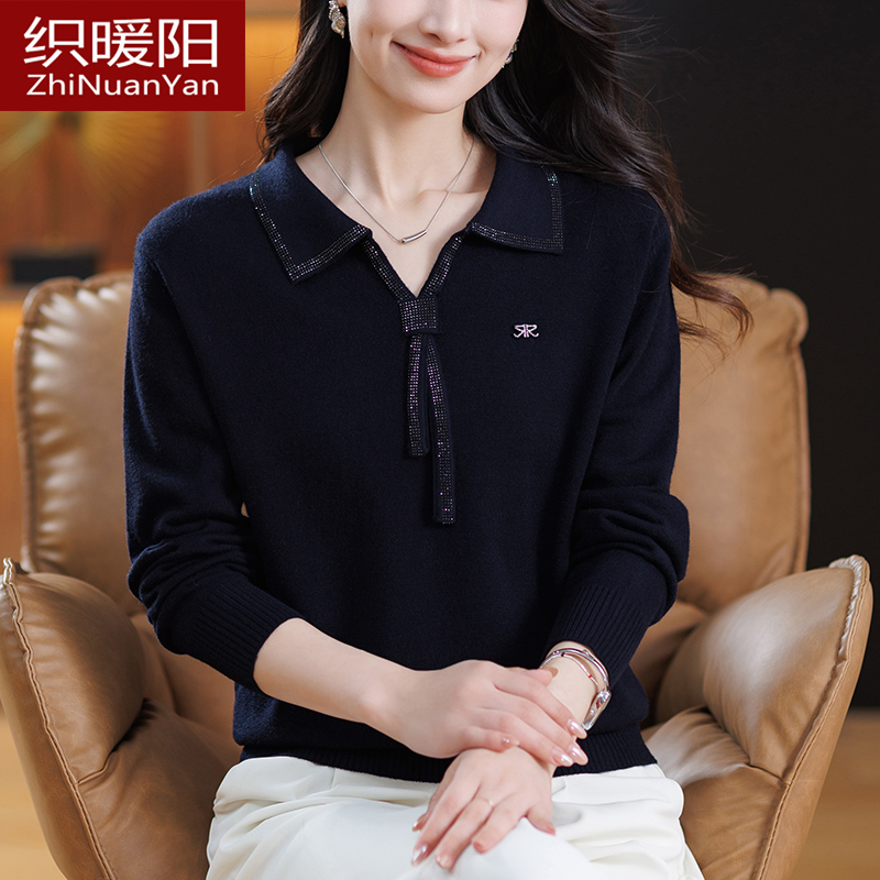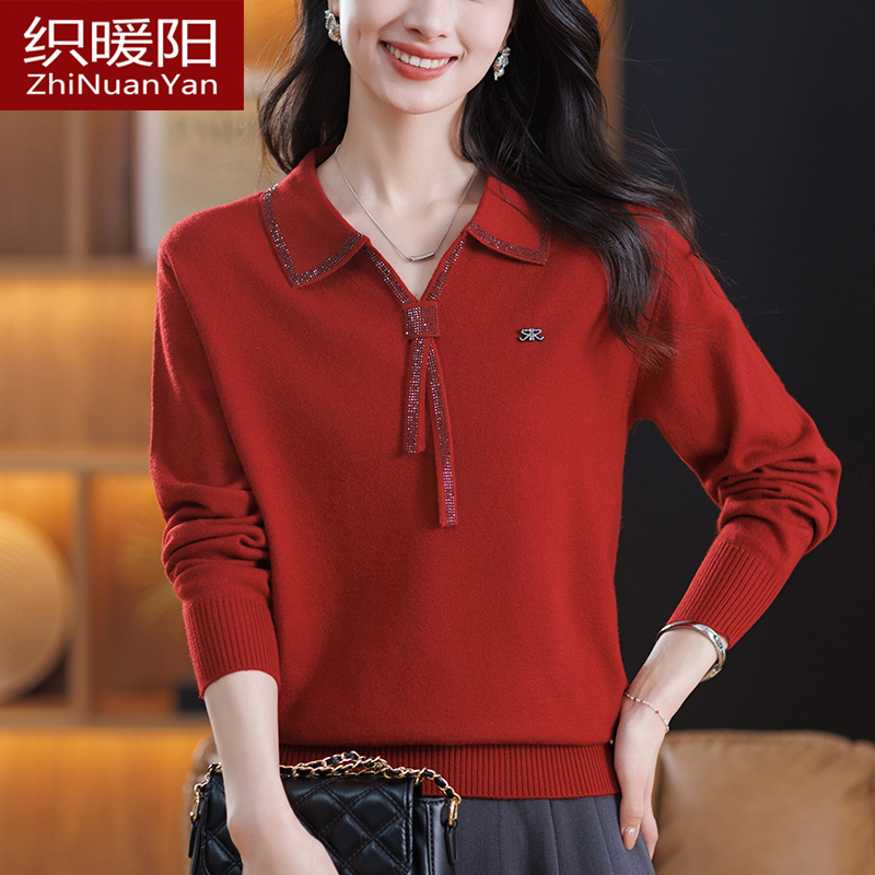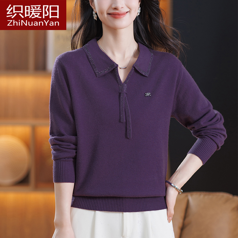 中年妈妈羊毛衫女秋冬宽松针织衫上衣大码洋气翻领羊绒毛衣打底衫