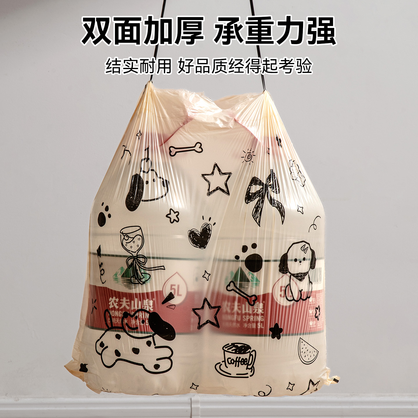 香氛免撕垃圾袋家用抽绳手提式加厚学生宿舍办公室印花大号塑料袋