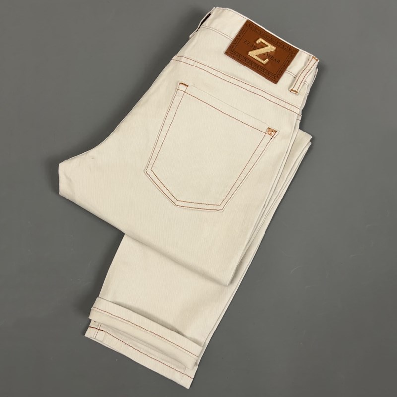 高端简约香槟杏九分弹力牛仔裤男夏季薄款潮流修身直筒商务休闲裤