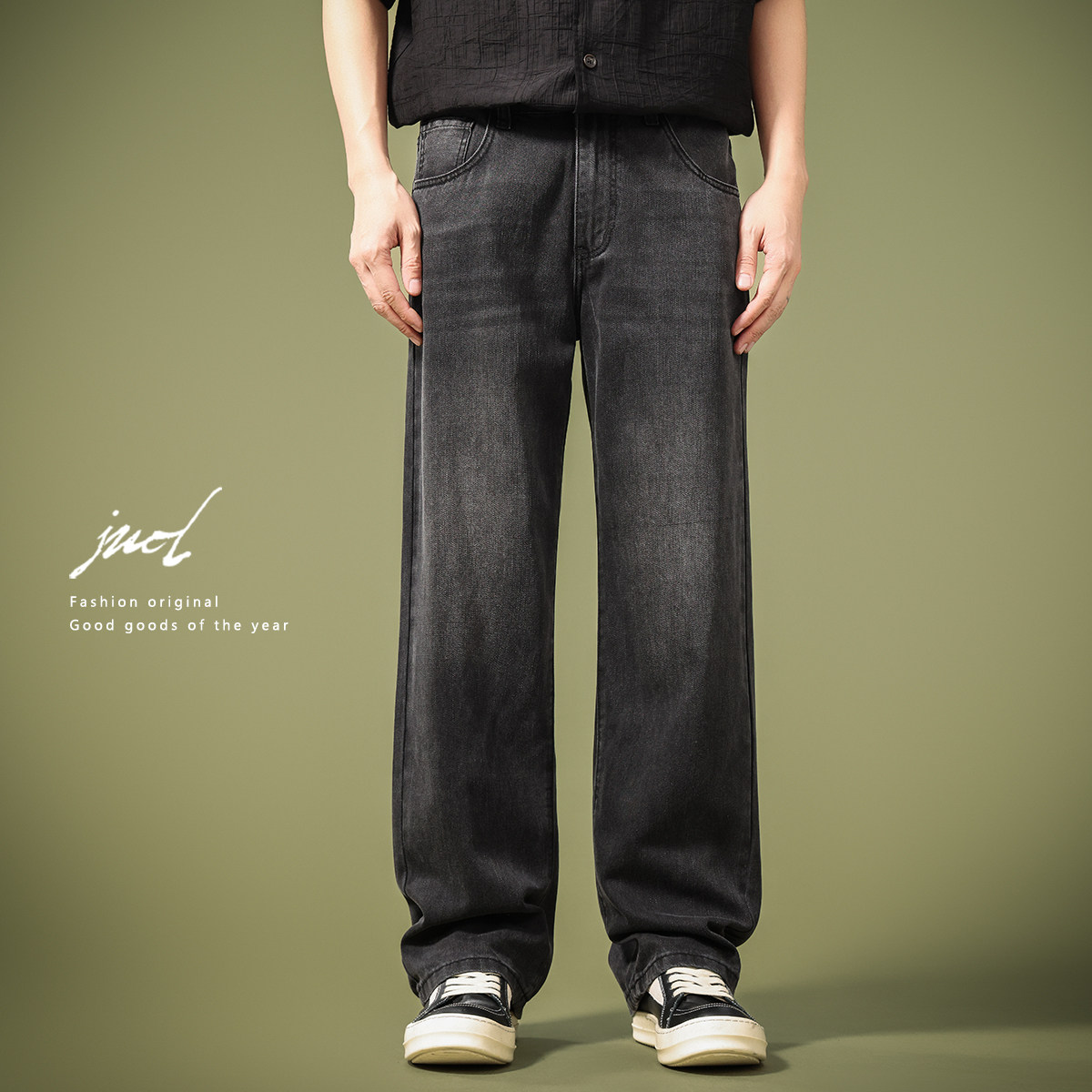 莱赛尔天丝垂感直筒牛仔裤男夏季薄款复古水洗美式休闲宽松长裤潮