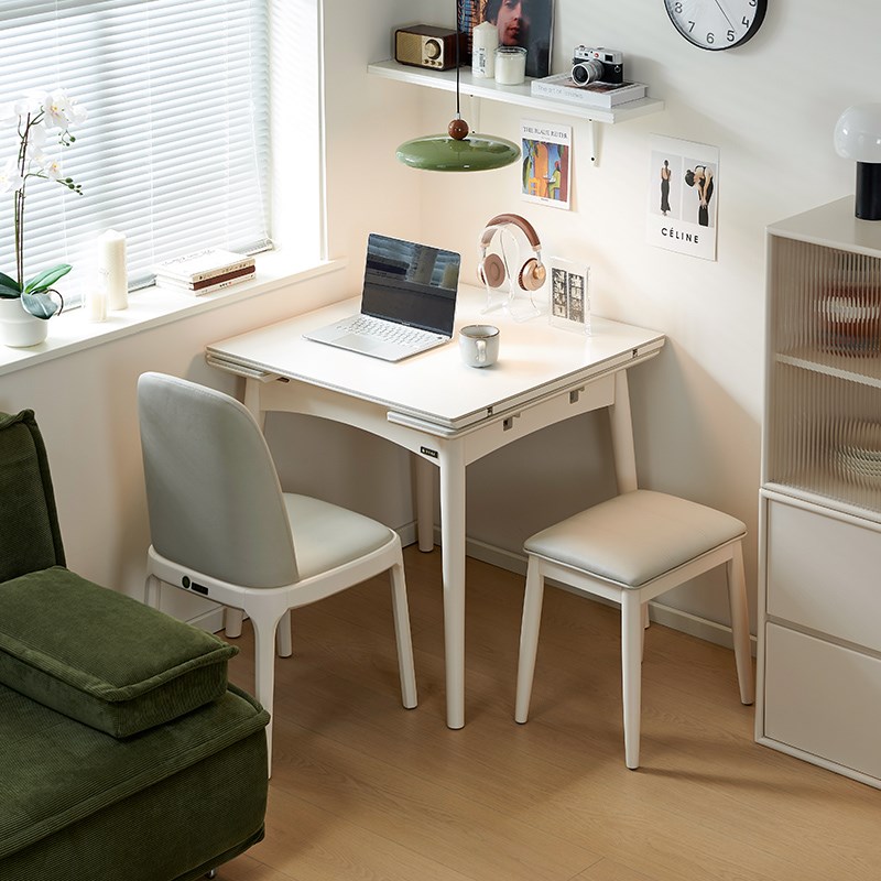 可伸缩式餐桌家用小户型奶油风多功能省空间简约白色岩板吃饭桌子