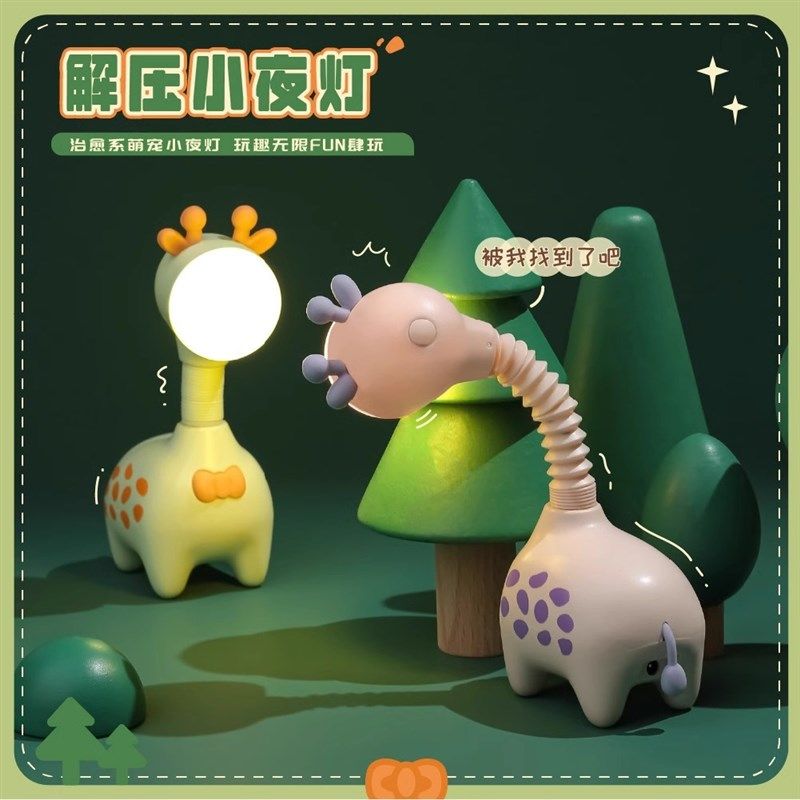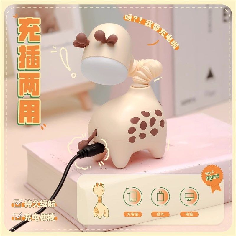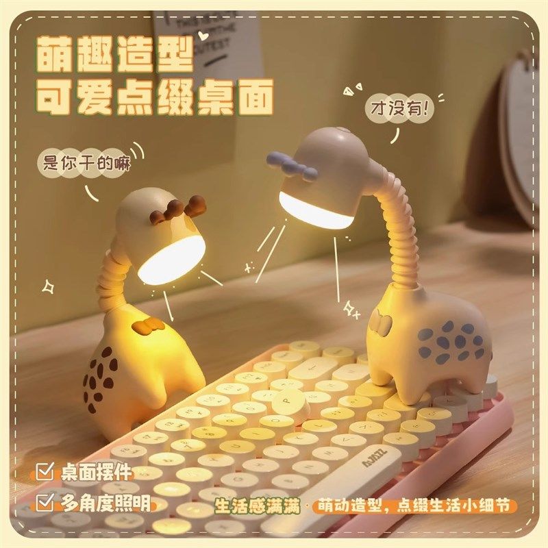 趣味长颈鹿小夜灯LED护眼伸缩弯曲桌面阅读学习台灯宿舍大学生