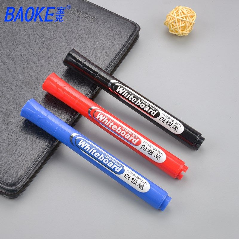 宝克白板笔黑色水性可擦可加墨彩色红蓝黑板笔用品文具画板笔写字