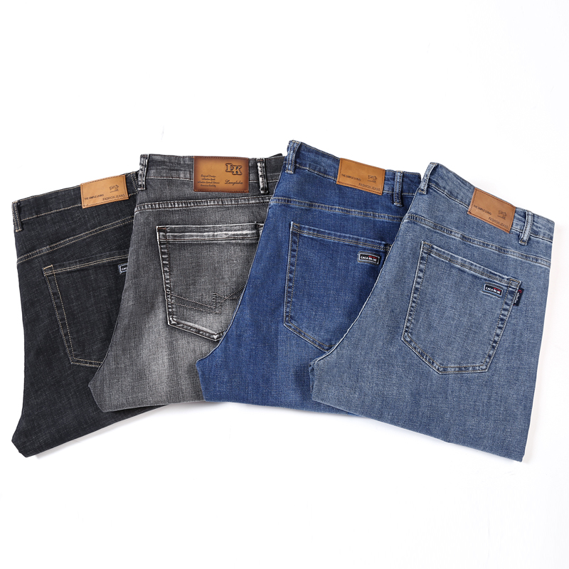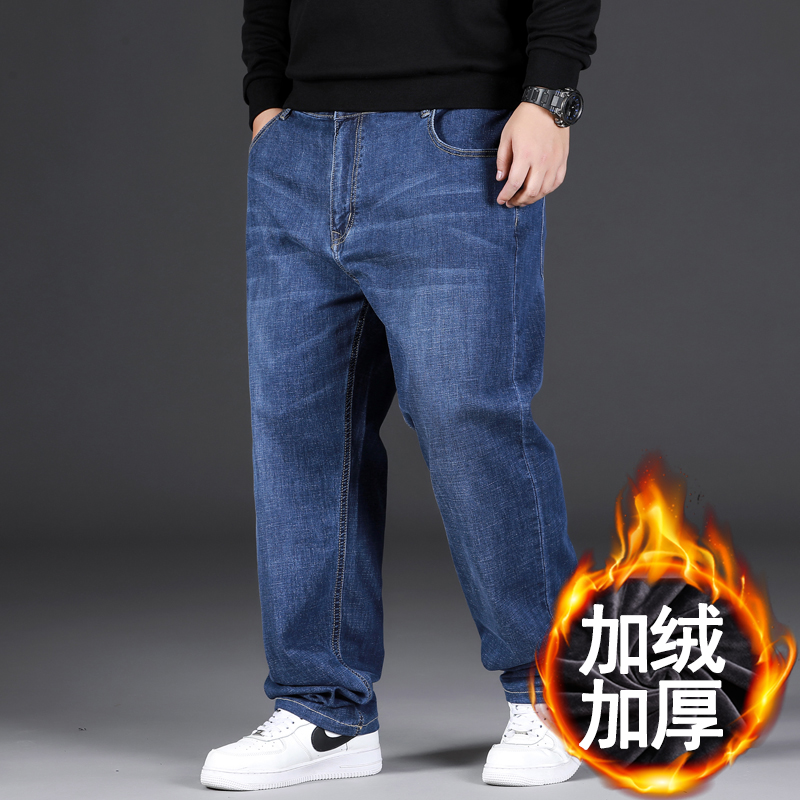 冬季加绒加厚牛仔裤男宽松直筒加肥加大码胖子肥佬弹力长裤纯黑色