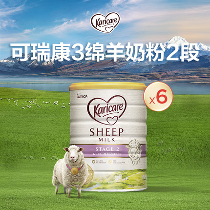 新西兰进口 karicare可瑞康幼儿配方绵羊奶粉2段 900g*6罐